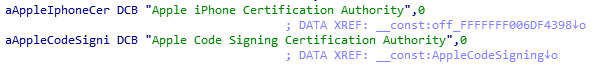 CoreTrust est une intermédiaire ajoutée entre la kext AMFI et le démon amfid pour vérifier l’intégrité des certificats. De plus les certificats pour les signatures sont dans __TEXT .__ const, une région de la mémoire protégée par KPP/KTRR.