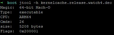 Comme sur chaque appareil de la marque à la pomme, le firmware de la montre embarque donc un kernelcache : kernelcache.release.watch4.
