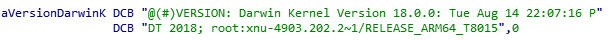 Mais quelque chose cloche, la valeur de LC_SOURCE_VERSION ne correspond pas à la version du noyau XNU (4903.202.2), mais à celle du KernelCacheBuilder (1469.200.52.0.0), l’outil utilisé en interne chez Apple pour créer les kernelcaches.