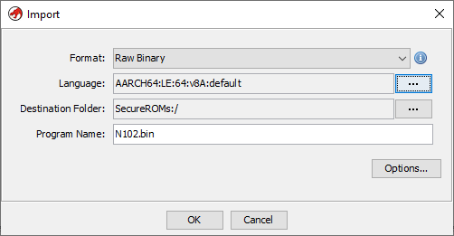 Comme le fichier est considéré comme de la donnée brute (raw), Il faudra spécifier manuellement certains paramètres (architecture, endianess). Si Ghidra détermine le type de fichier, vous n’aurez pas à passer par cette étape.