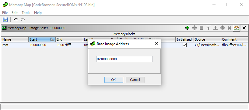 Du coup il faut maintenant changer la valeur de base. Window -> Memory Map on clique sur la petite maison pour remplacer l’image de base par défaut par la bonne adresse.